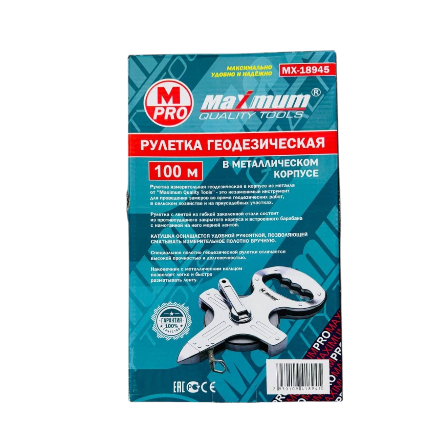 Геодезическая рулетка «Maximum» 100 метров — это эталон надежности для ежедневных измерений. Прочный металлический корпус защищает от ударов и влаги, а стальная лента длиной 100 м с износостойким покрытием гарантирует точность. Оснащена удобной эргономичной рукояткой и металлическим штырем для фиксации в грунте. Идеальный выбор для строителей, монтажников и геодезистов.